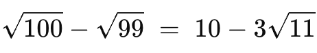 Each of them can be written as the difference of two surds in the form above, where x is 100, 64, 25, 81 and 49 respectively.