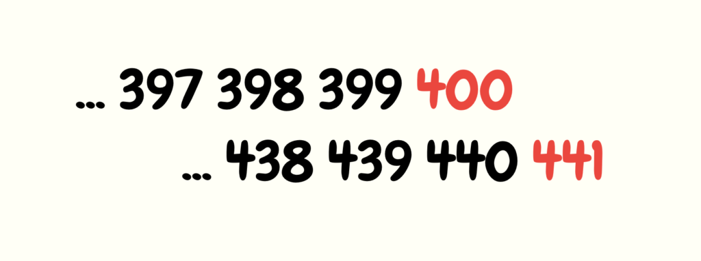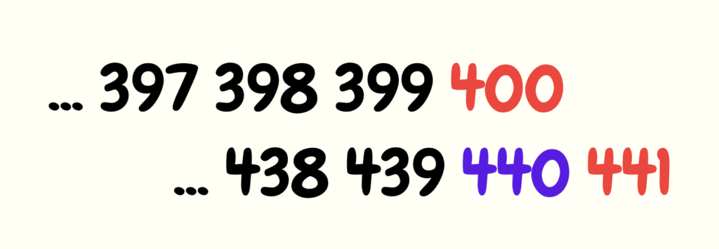 Now we clearly see that the number below 400 is 440.