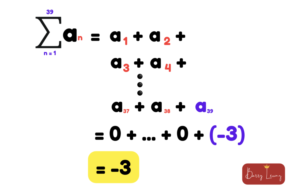 The sequence does look a bit scary at first glance, but fret not, writing out the first few terms will help you find the summation from n = 1 to 39.