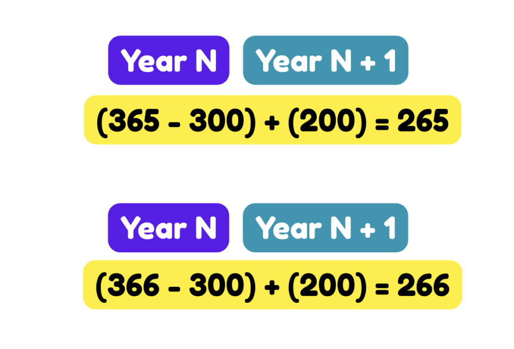 So the 300th day of year N is 5 days after the 100th day of year N − 1.