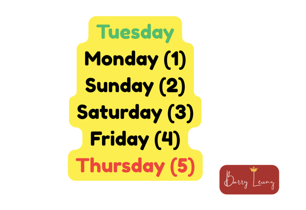 Since we are going backwards, we go 5 days before Tuesday.