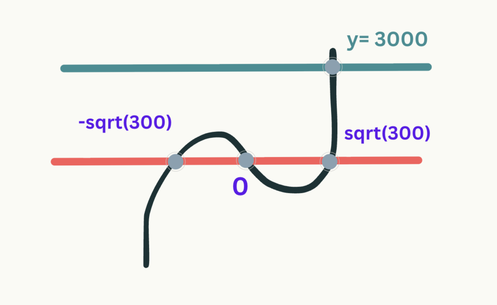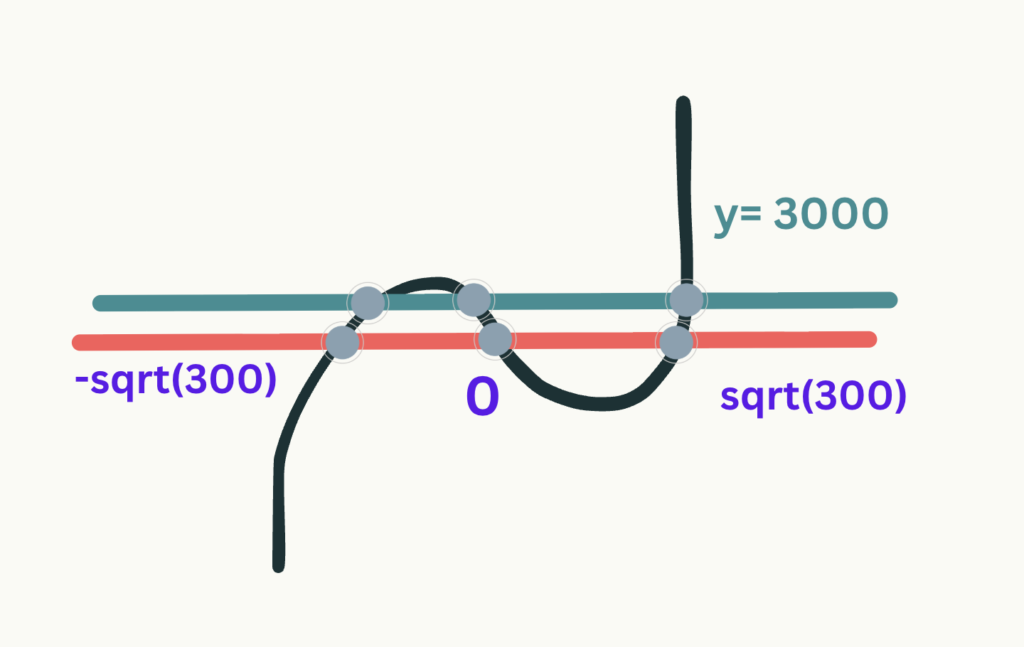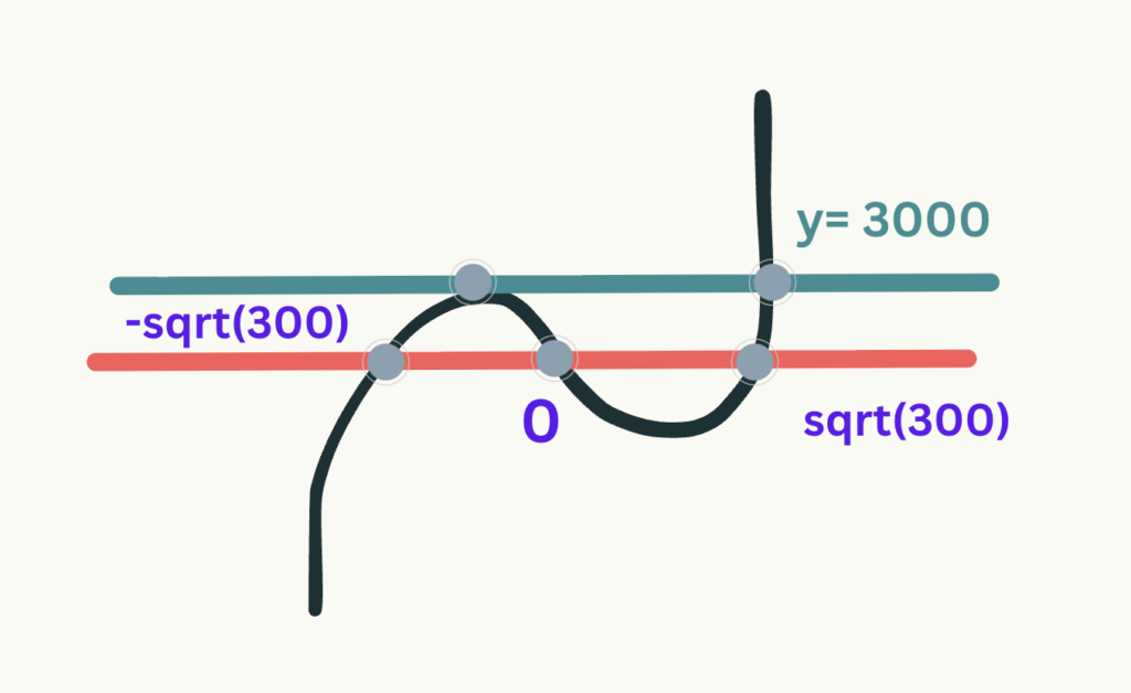 So far so good. But what we are really interested in is how many intersections this makes with the line y = 3000.